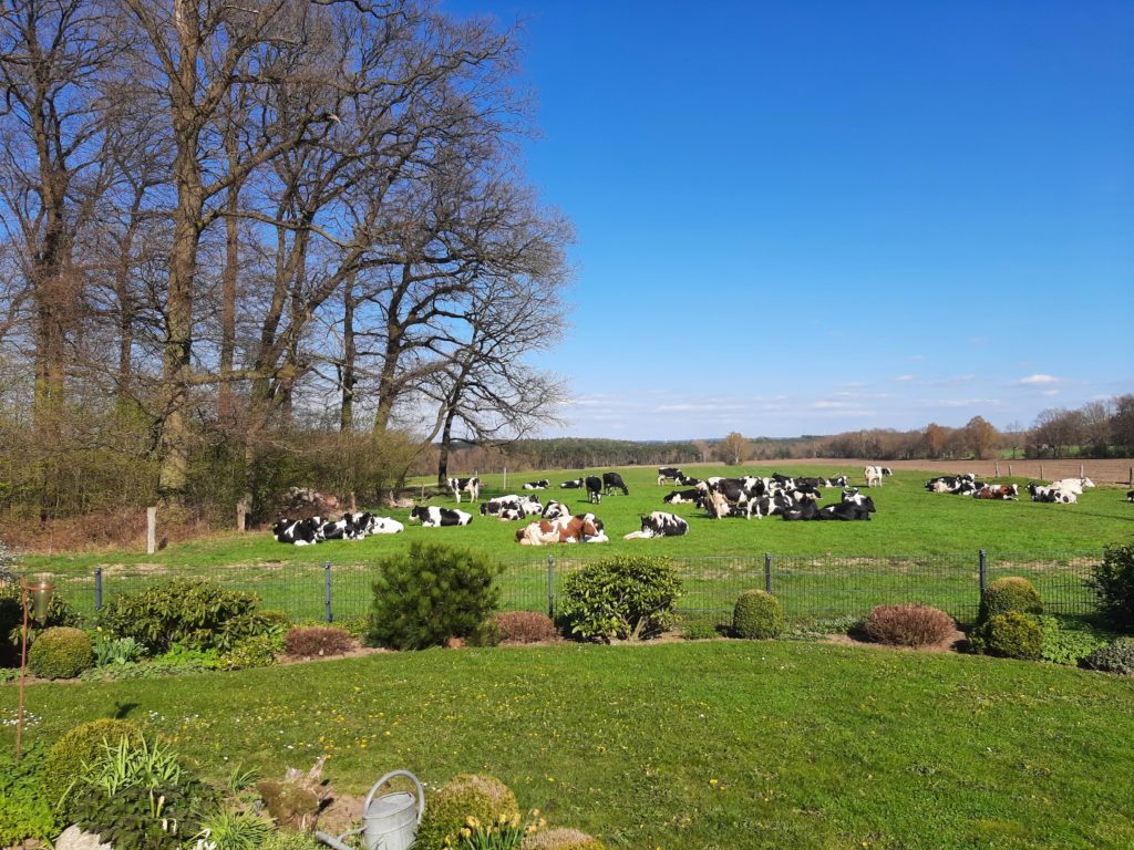 Rund 40 Kühe werden bei uns täglich zweimal gemolken – die weibliche Nachzucht ziehen wir selbst auf.Unsere Kühe samt Jungtieren dürfen in den Sommermonaten den Weidegang genießen. Im Ackerbau setzen wir seit langem moderne Anbaumethoden ein – beispielsweise Strip-Till beim Maislegen. Da ein Großteil unserer Ackerflächen in einem Wasserschutzgebiet liegt, nehmen wir an regelmäßigen Feldbegehungen teil, bei denen wir gezielte Empfehlungen für die Bewirtschaftung unter Wasserschutzauflagen erhalten.